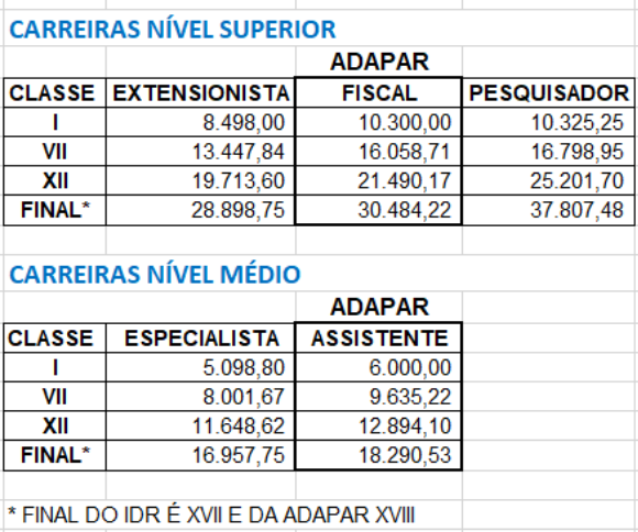 Os valores propostos estão abaixo da proposta inicial. No entanto, encontram-se entre as melhores faixas salariais das carreiras da SEAGRI. A tabela abaixo ilustra essa comparação: