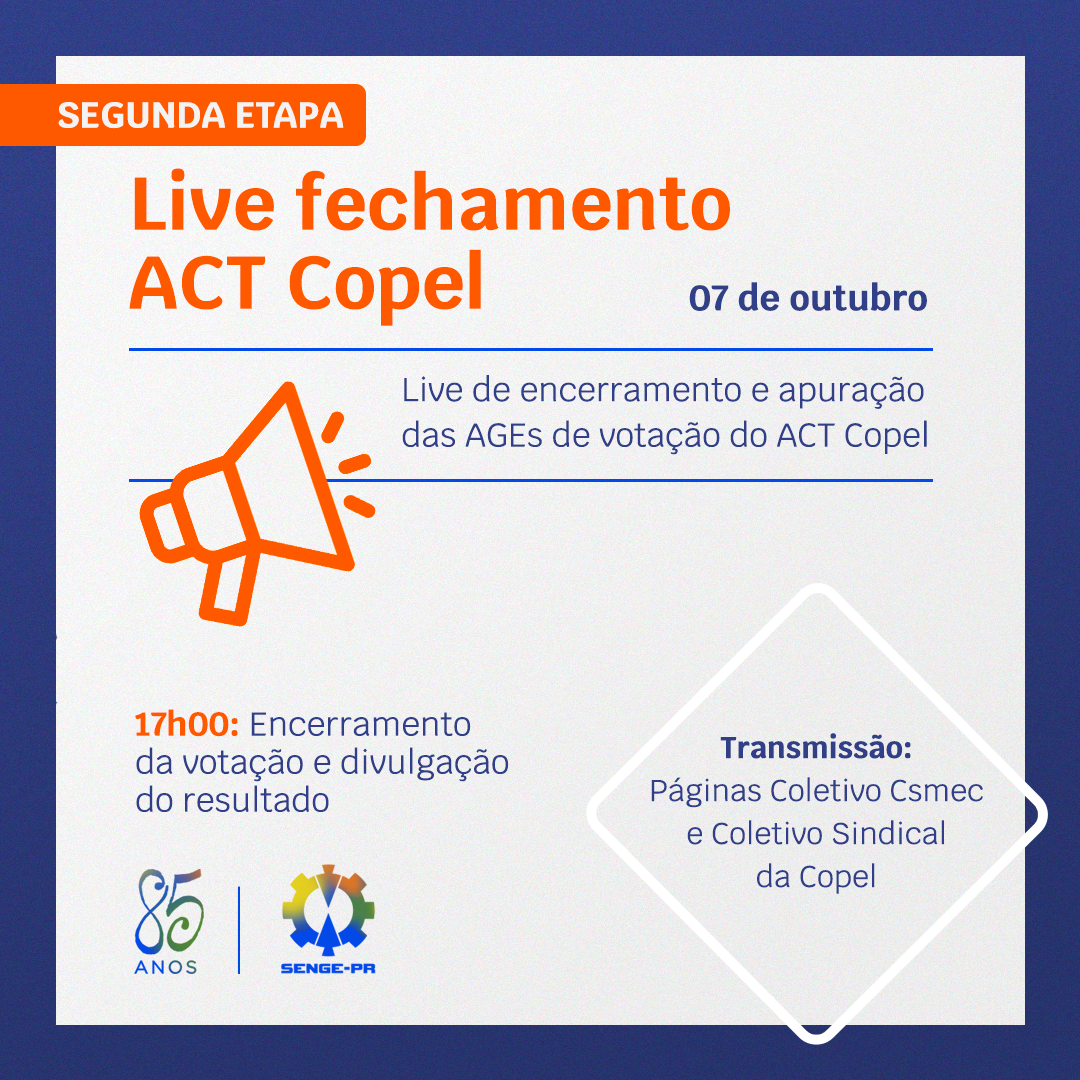 Fim da votação e divulgação do resultado da proposta da Copel em relação ao acordo Coletivo de Trabalho (ACT 2020/2022). A empresa manteve a mesma proposta já rejeitada pelos copelianos.